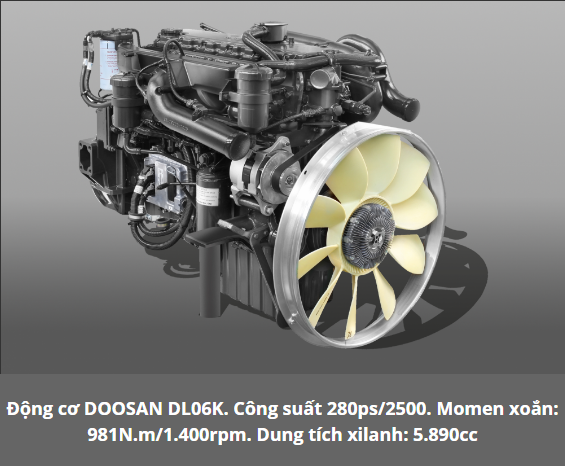 Xe được sử dụng động cơ Doosan DL06K với dung tích xy lanh đến 5890 cm3. Xe tải Daewoo 15T mới được Đô Thành nhập khẩu CDK Hàn Quốc và phân phối độc quyền từ 2019. Xe tải Daewoo 15T sử dụng đồng bộ lốp xe loại lớn 11-20R.